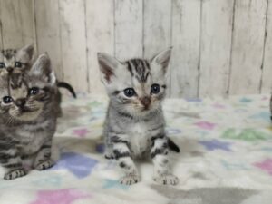 たくさんの子猫の中から、この子をご覧いただきましてありがとうございます! シルバータビーの模様がとても綺麗なかわいい子です♪ お母さんの愛情を受けて、すくすく成長中! お顔立ちへのこだわりはもちろん、健康面にも配慮しながら、わが子のように大切に育てたこだわりの子猫です。 獣医師による健康診断、予防接種ワクチン、マイクロチップ、血統書コミコミの金額です💰 追加料金はございません!!&今食べているフード1kgプレゼント!🎁 ぜひご予約の上、かわいい子猫たちに会いに来てください! 気になることがありましたら、お気軽にご質問下さいね。  お問い合わせお待ちしております!